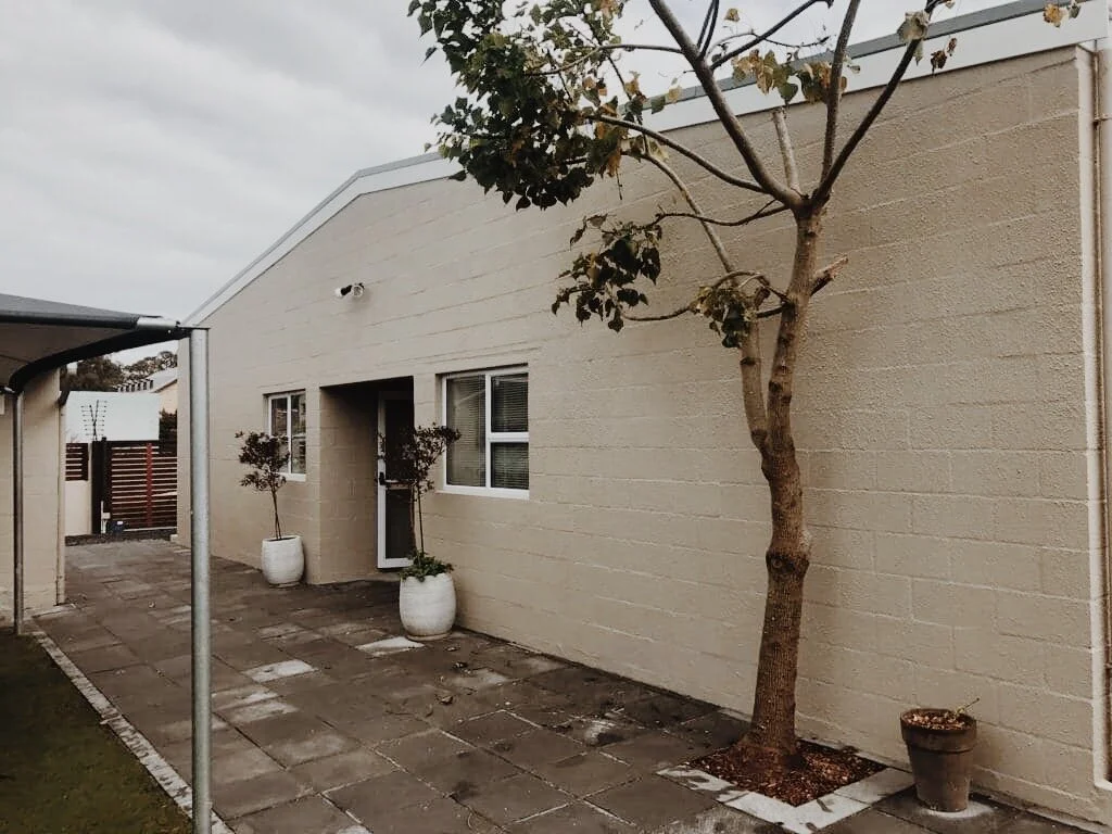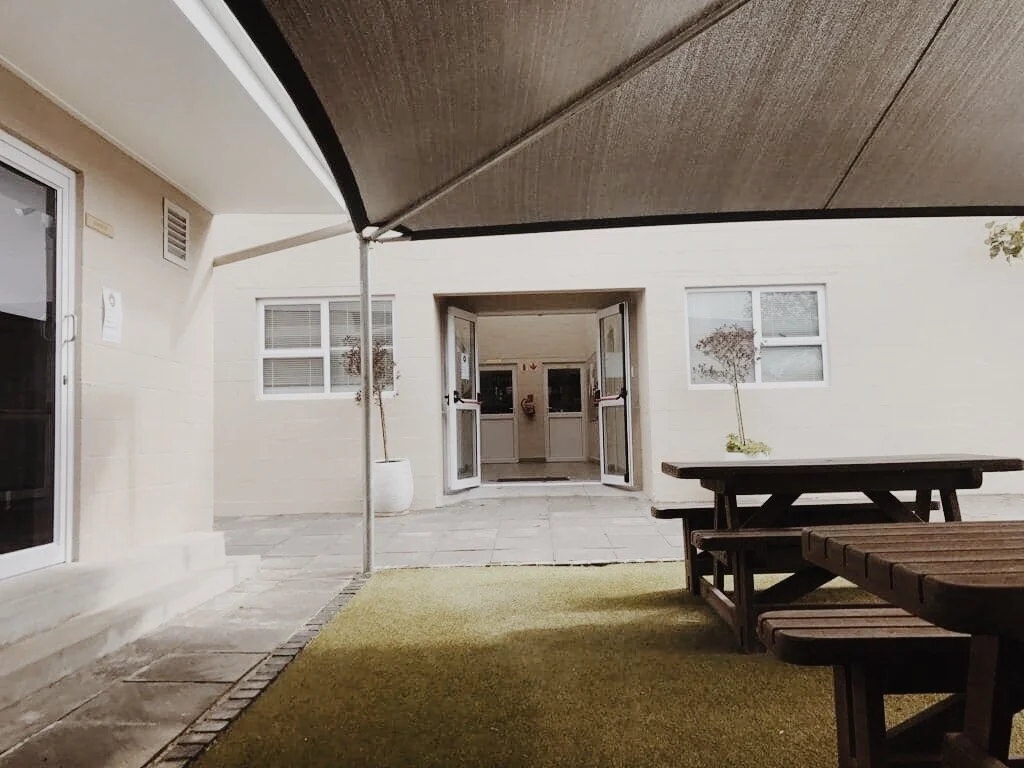 Before and after images of school extention.